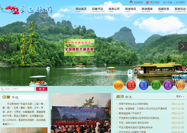 为加强对外宣传促销力度,向国内外充分展示平远丰富的旅游资源和旅游产品,进一步提升平远旅游的知名度、美誉度,塑造平远旅游形象,打造“何必舍近求远,旅游请到平远”的旅游品牌,平远旅游官方网站在全体工作人员的努力下,经过重新设计,几经删添,终于与广大网民见面。网站将为游客提供平远“吃、住、行、游、购、娱”全方位的最新资讯和服务指引,让更多的人来关注平远、了解平远。