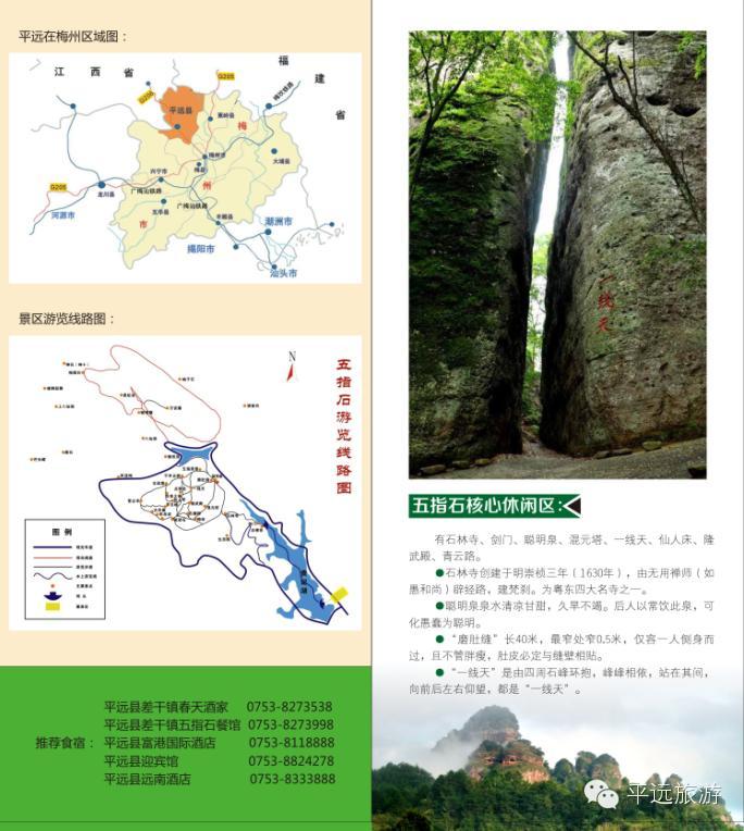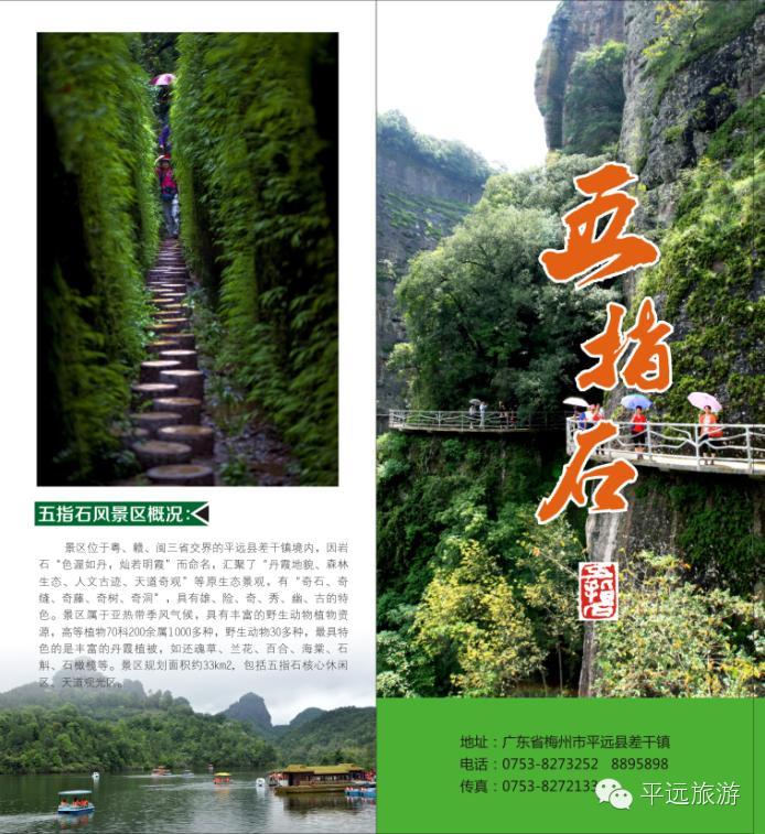 五指石位于广东省平远县境内,发育于1亿多年前的侏罗纪中晚期,是丹霞地貌中最具潜力和影响力的新秀。五指石因拔地而起,形同五指擎天的五座丹霞石峰而得名。景区内建有广东第一高空栈道——“五指石天道”,依绝壁环山而行,可近距离一览原始而又神秘的丹霞风光。
