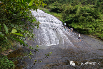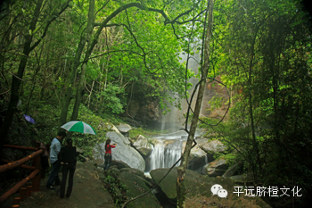 平远山高林密,地处亚热带气候,雨水充沛。如果把春天比喻为舒缓的《春天圆舞曲》,那山间瀑布就是曲中高潮。万丈洪泉落,滚滚如春雷,高挂彩虹,张扬着青春的燥动。南台卧佛山“脚部”的瀑布,从百米绝壁奔泻,撞击于丹霞巨石,飞花碎玉,气浪袭人。观瀑,让平淡的日子增添重音符鼓点。我在想,假若瀑布不从万丈悬崖上奔流而下,用倾泻的生命写就奔腾的春曲,也许就没有那段辉煌的生涯,或许会像山泉、像小溪,一样的默默无闻。