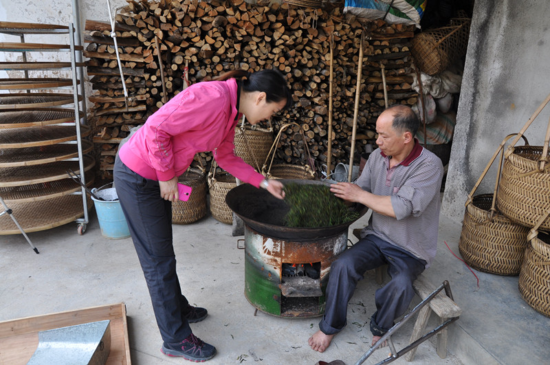 木炭烘干,手工炒茶