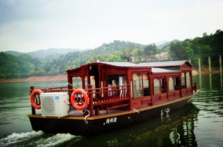 龙湖1号:游船为电力驱动,时速约10公里/小时,装有音响等电子设施。