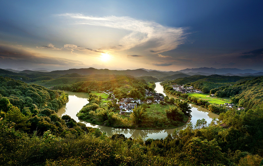 平远,蓝天白云空气鲜,绿水青山人悠闲。