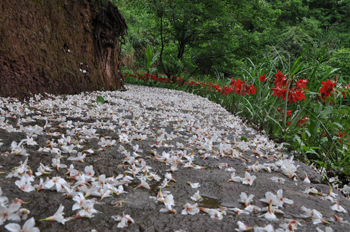 花落林中,招来清风鸟鸣共相送