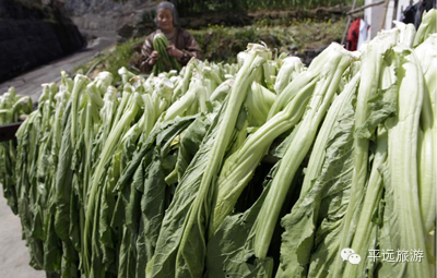 ◆采摘菜心:梅菜干有芥菜干、油莱干、白菜之分。上举梅菜对气候的要求较高,一般在秋后入冬时分种植,不施任何化肥、农药,待到菜园里的芥菜抽了苔,它拇指粗细,顶带花蕾,形如秋萄,脆嫩味甘。这时摘下菜心(长约5寸左右),晾挂几天。