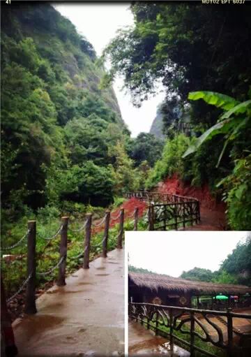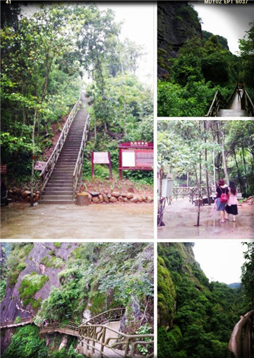 ◆进入景区准备上栈道之时,天空飘起零星小雨,对于想尝试淋回雨的人自是得到了愉悦的满足。于是,带着美丽心情踏上栈道阶梯……