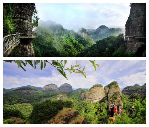 汇聚“丹霞地貌、森林生态、人文古迹、天道奇观”四大景观,景区内汇聚雄、险、奇、秀、幽、古的特色,这里有广东第一高空栈道,依绝壁而建,一边是陡峭的千仞石壁,另一边是深邃的万丈深渊,气势恢宏,壮观至极。天道上绿荫环绕,清风徐来,很是惬意。