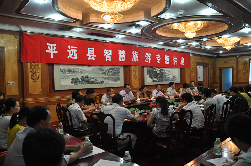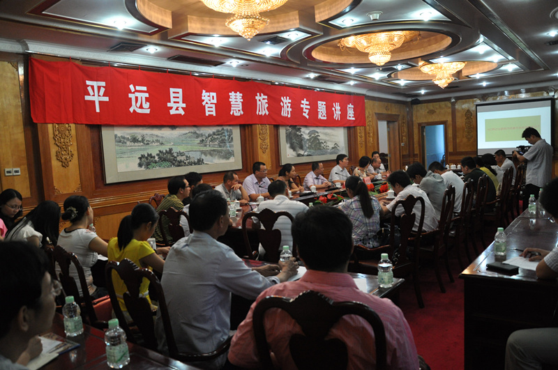 7月28日上午,在平远县迎宾馆,“移动互联网时代的平远旅游”的智慧旅游专题讲座开讲啦。有近40家旅游企业参加了讲座,副县长陈远航同志还发表了讲话,要求县内各旅游企业认真学习,培养营销新思维;积极参与,实现营销新突破;努力建设,打开营销新局面。
