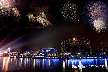 当夕阳西下时,晚霞满天,染红了天际,而鲜花又开得如火如荼,一朵朵,一簇簇,一树树,一片片,争奇斗艳,一直开到了天边同彩霞连为一片,成为一个红彤彤的世界,而湖水却是碧绿碧绿的,小草是翠绿翠绿的……如同碧玉翡翠,这一块,那一片,连接起来像是一个绿色的世界。在这红与绿的世界里,魔方般的楼房,积木般的餐厅,玩具般的船儿,天仙般的美人,又构成了一个充满幻想的童话世界,