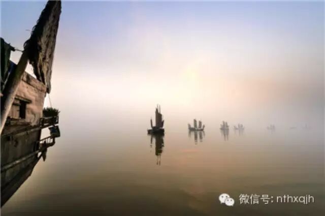 清晨的太湖,旭日初升,金色的阳光洒在浩淼的湖面上,被晨风拂过,涌动着金色波纹;湖中的岛屿,蒙着晨雾的面纱,如少女般含羞带娇地时隐时现。