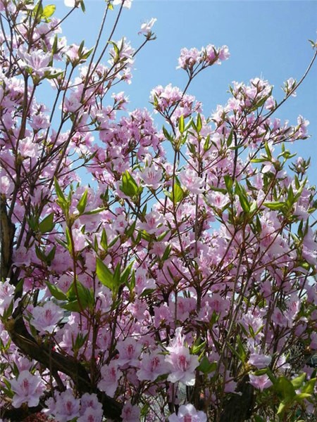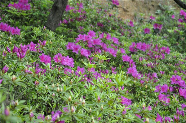 走到近处大片的紫红色杜鹃次第开放,令人愉悦。