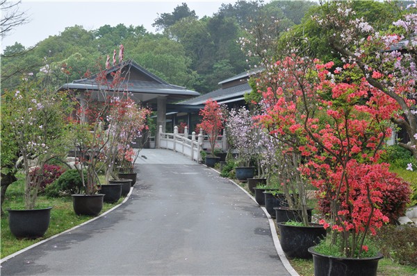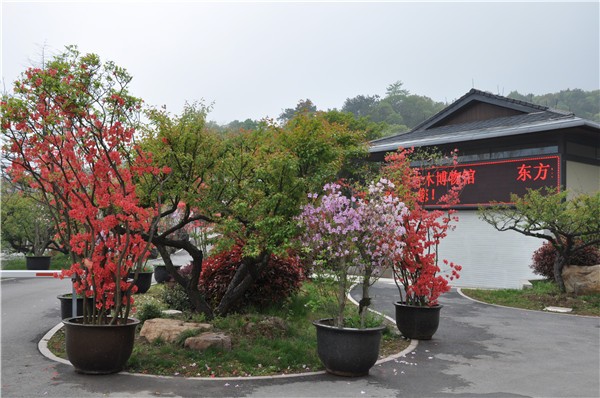 来到博物馆入口你便可以看见依次摆放着花枝招展的杜鹃盆景。