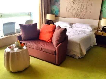 顶级客房大床房是这样的,酒店房间内的灯窗帘等都是可以用pad控制的。