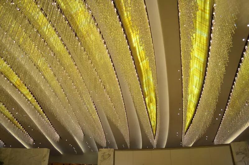 大堂顶部的灯饰你也要知道,全部采用施华洛世奇水晶,一闪一闪亮晶晶!
