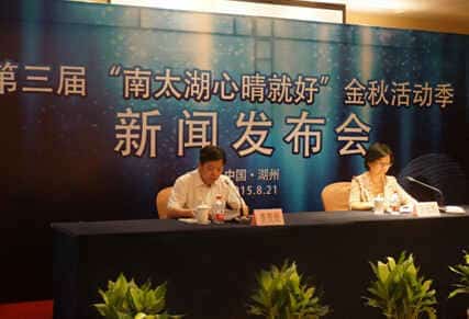 会议由湖州市政府新闻办主任龚贵庭主持,组委会执行副组长、太湖旅游度假去管委会副主任计欣华女士通报了第三届“南太湖心晴就好”金秋活动季的最新情况并答记者问。