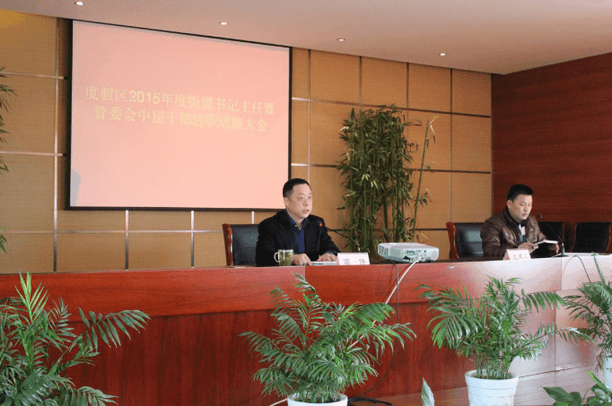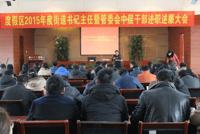 1月23日上午,度假区召开2015年度街道书记主任暨管委会中层干部述职述廉大会。委领导、各街道(管理处),委机关各部门、分局(支队),直属各单位全体机关干部共130余人参加,度假区党委副书记、管委会副主任沈建军主持。