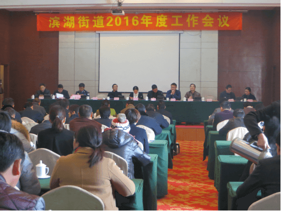 2月17日下午,滨湖街道召开2016年度工作会议,街道机关、村(社区)两委全体干部参加会议,街道党委书记丁方英作工作部署,街道党委副书记、办事处主任吴军主持会议。