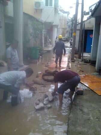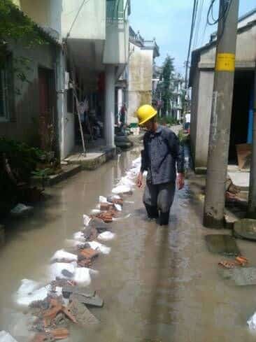 由于蒋家圩自然村“周边高、中间低”,加上紧临小梅港,直通太湖水域。连续性的强降水造成村内道路严重积水,最深处没过成人膝盖,情况危急。