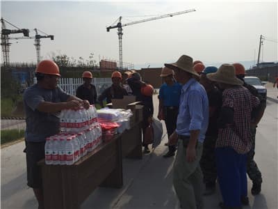 7月26日,委领导葛伟、佘国勤等一行来到建设发展一线进行了高温慰问。慰问组先后来到了渔人码头物业、长东农民社区、鹤和小学、鑫远区块配套道路建设、长田漾湿地环境整治等多个单位和在建工地现场,将毛巾、饮料、祛暑药品等送到了一线工人手中,并道一声辛苦,感谢各位建设劳动者的辛勤付出。在现场还详细听取了各个单位暑期作业情况及防暑降温采取的措施,并嘱咐各个单位和建设工地要合理安排工序、施工时间,错开中午高温时段,采取相关防暑降温措施,保证一线工人的身体健康,确保建设一线的工人们在酷暑期间安全生产、安全度夏。同时,仍要继续加强工程的安全和质量意识,确保工程进度,打造精品工程,保质保量完成各阶段目标。