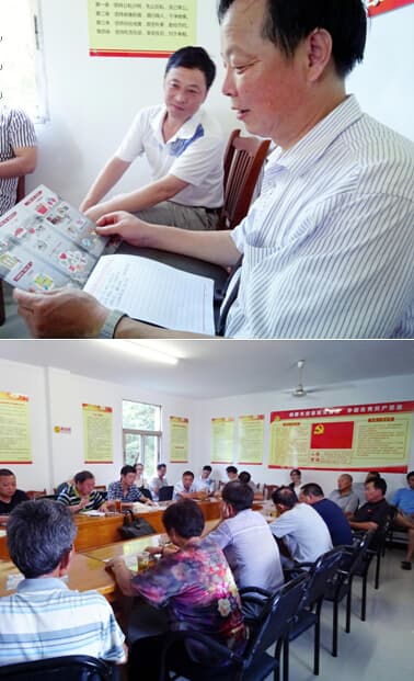 会上,渔山村党支部给每位党员发放了长田漾湿地党工委编制的《两学一做学习教育图解》。