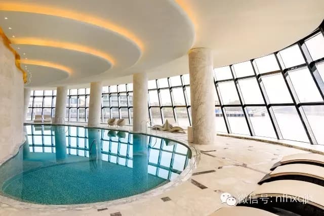 室内游泳池也不小,还有很多设施,落地玻璃窗的设计,在私密的同时也能欣赏太湖美景。约上三五好友,在这里游个泳聊个天岂不美哉!