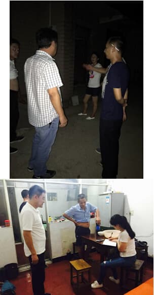 各行政村在联村领导的带领下,分别对本村的出租房进行地毯式排查,对照前期掌握的出租房名单,逐一检查核实、拍照留档、登记造册,为每户出租房建立信息档案,详细记录出租房的地址、面积、层数;出租人的姓名、联系电话;承租人的姓名、居住人口等基本信息。重点检查内容包括:电线拉接是否合规;用气是否规范;灭火器是否配齐,能否正常使用;房屋是否年久失修、存在裂缝、倾斜等现象;有无存放、销售烟花爆竹等易燃易爆物品以及其他安全隐患。同时,对排查过程中发现的问题要求及时整改到位。