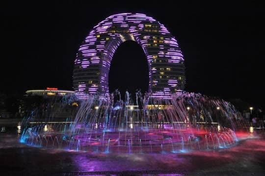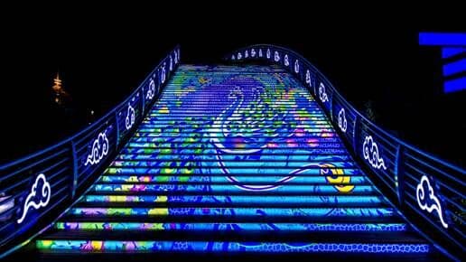 亮化提升后的月亮桥设计主题为“孔雀开屏”,一双深情对望的孔雀驾着七彩祥云相对而飞,演绎的甜蜜浪漫韵味正代表着蜜月小镇的爱情甜蜜。月亮广场中央的音乐喷泉,在灯光的变换下,时而波光跳跃,时而一注冲天。夜晚的南太湖繁华璀璨中带着安宁静谧,毫无保留地展示着它的魅力。