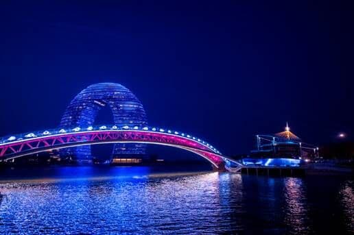 近日,经过前期精心准备和施工改造,湖州太湖旅游度假区月亮桥亮化提升工程通过验收,以璀璨浪漫的风韵正式亮相,吸引了八方游客驻足欣赏。