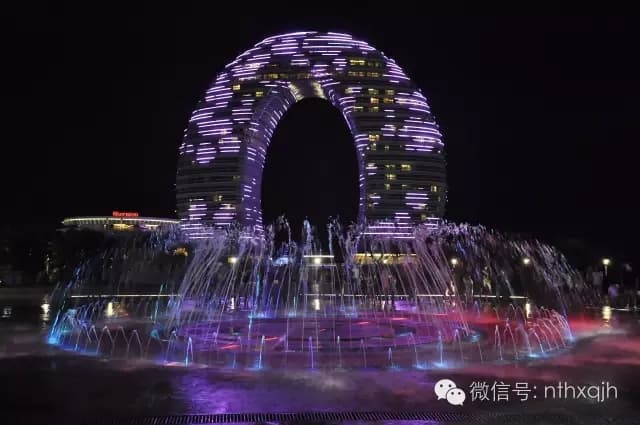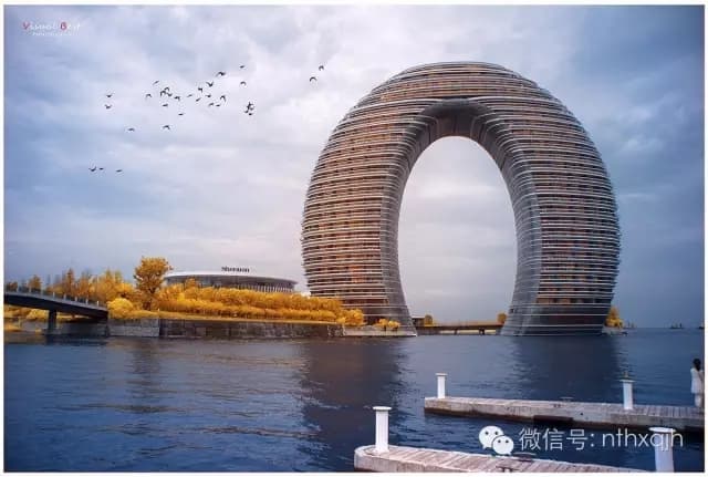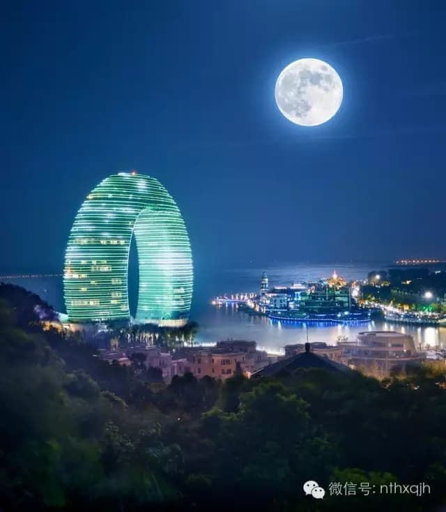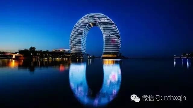 南太湖的月亮酒店状如指环,仿若一轮明月荡漾于太湖之上,与水中倒影遥相呼应恰似两个月亮。而天上一轮如盘明月缓缓升起,此时天上、地上、湖面上,四轮明月娴雅而又润泽的光华,让人陶醉。