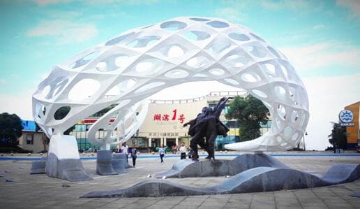 位于渔人码头入口处的“太湖网事” 雕塑,以太湖渔民撒网之势取意“太湖网事”。象征着山与水天作之合,鱼与网浑为一体。代表着撒出的是网,收获的是鱼;撒出了希望,收获了幸福。渔民之舞,牵动着乡愁;号角之声,回响在太湖。浪花之间,有我深情的思恋;太湖之滨,是爱沉淀的港湾。位于太湖左岸的极限人物雕塑以极限运动的基本形象为蓝本,主要介绍了7类运动类型,展示极限之都的形象,让人们更形象地了解南太湖极限运动文化。位于太湖阳台的鱼旗,以太湖水特产白鱼为主,配和其他鱼类及白虾等形象,展示太湖水产丰富,游鱼成群的形象。