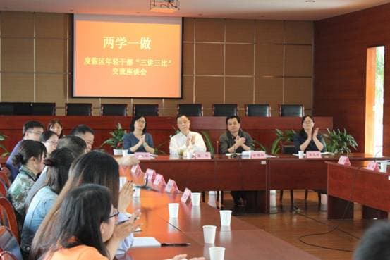 为给年轻干部提供学习交流展示的平台,促进年轻干部快速健康成长,10月24日下午,度假区召开“两学一做”度假区年轻干部“三讲三比”交流座谈会,度假区党委书记、管委会主任葛伟,度假区党委副书记、管委会副主任徐建兵,度假区党委委员、管委会副主任计欣华,政治处主任袁文燕,政治处副主任符俊,年轻干部代表徐涛、冯斌、陈旭妍等15人,度假区委机关各部门、各街道(管理处)村、社区年轻干部共计70余人参加本次会议。会议由度假区党委副书记、管委会副主任徐建兵主持,优秀年轻干部代表围绕“讲实绩、讲担当、讲奉献,比效率、比作风、比作为”的主题逐一发言。度假区党委书记、管委会主任葛伟同志就提高年轻干部的党性修养、能力素质等方面,着重提出了三方面的要求:一是要认清大势、善于学习;二是要算明大帐、有真本领;三是要富有激情、从严从实。