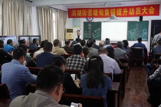 10月21日上午,街道召开滨湖街道塘甸集镇提升动员大会,度假区党委副书记、管委会副主任徐建兵,区党委委员、生态办主任、副调研员王阿平,区公安、执法、规划、建设、市场等部门负责人,街道、村两级干部,村党员、村民、集镇经营户代表参加会议,街道党委书记丁方英主持会议。