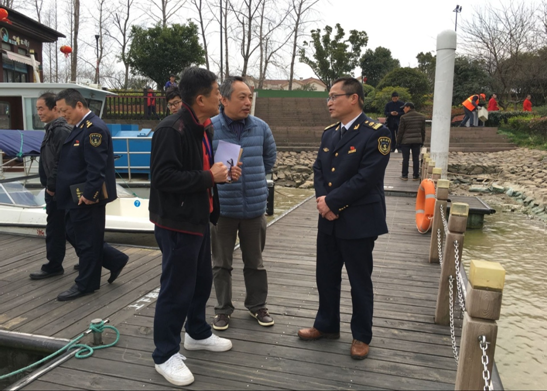 3月15日下午,湖州市港航局赵列克局长和市直属分局局长沈普华等一行来湖州南太湖游船公司进行调研。
