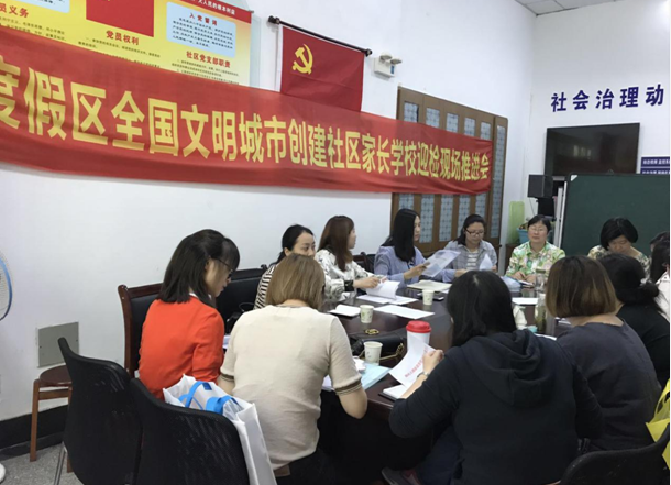2017年5月10日上午,度假区妇联在仁皇山二社区召开度假区全国文明城市创建社区家长学校迎检现场推进会。