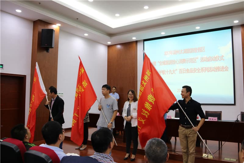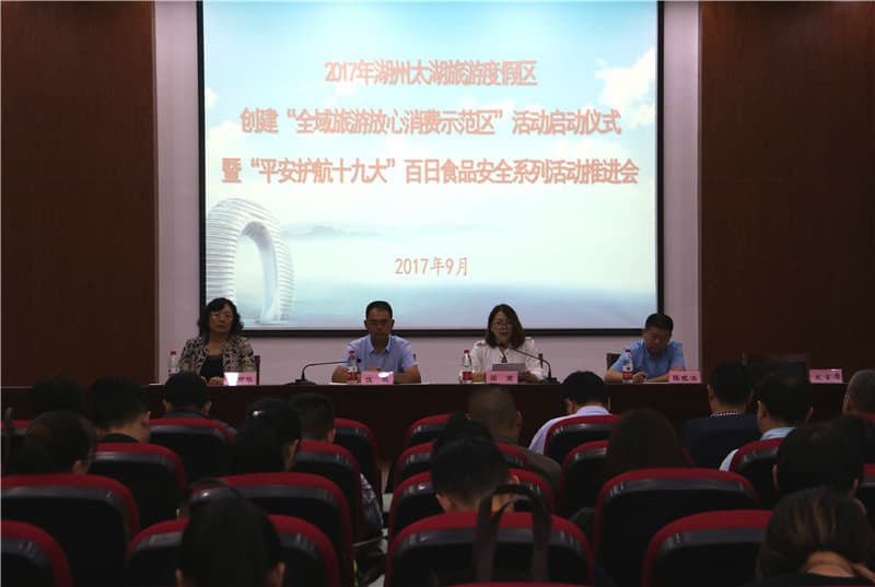 为全面推动“放心消费在浙江”工作在湖州太湖旅游度假区的落地,全力创建全市首个“全域旅游放心消费示范区”,突出食品安全和消费维权工作的“双轮驱动”,确保“平安护航十九大”食品安全系列工作落到实处,以良好的食品安全环境迎接党的十九大胜利召开,太湖旅游度假区管委会在“十一黄金周”前举行“全域旅游放心消费示范区”创建和“平安护航十九大”食品安全系列活动启动仪式,努力打造“国际知名、国内一流休闲旅游度假目的地”国家旅游度假区,坚决打赢“平安护航十九大”食品安全这场硬仗。
